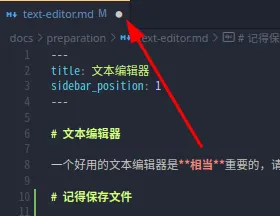 VS Code 会在未保存的文件后标记一个白点,提示你这个文件编辑了但是没有保存 (其他文本编辑器类似)。